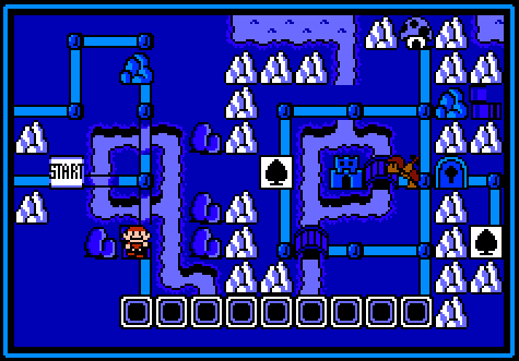 This area is very easy to access right off the bat once you know where it is. When you're standing at start, take the dark pathway to the left until Mario stops. Now enter it as you would any other level. This is a hack of a level hidden on the original start space of mario 3. If you don't let them slide away, it is possible to gain a full 99 extra lives. The missed self-rising shrooms will reappear once you revisit the same area. The ones in blocks disappear once you hit another block. A trick for the last blocks is to stand underneath the block you just bumped. Originally there were only 35 extra lives, but now that I can add any amount of objects to already-built levels to create monstrosities, expect the next version to have the most detailed levels possible :P